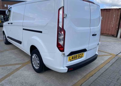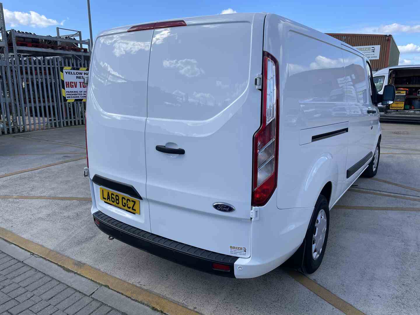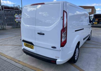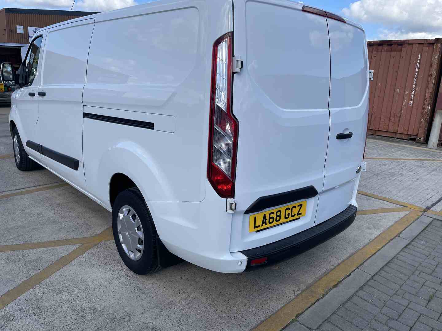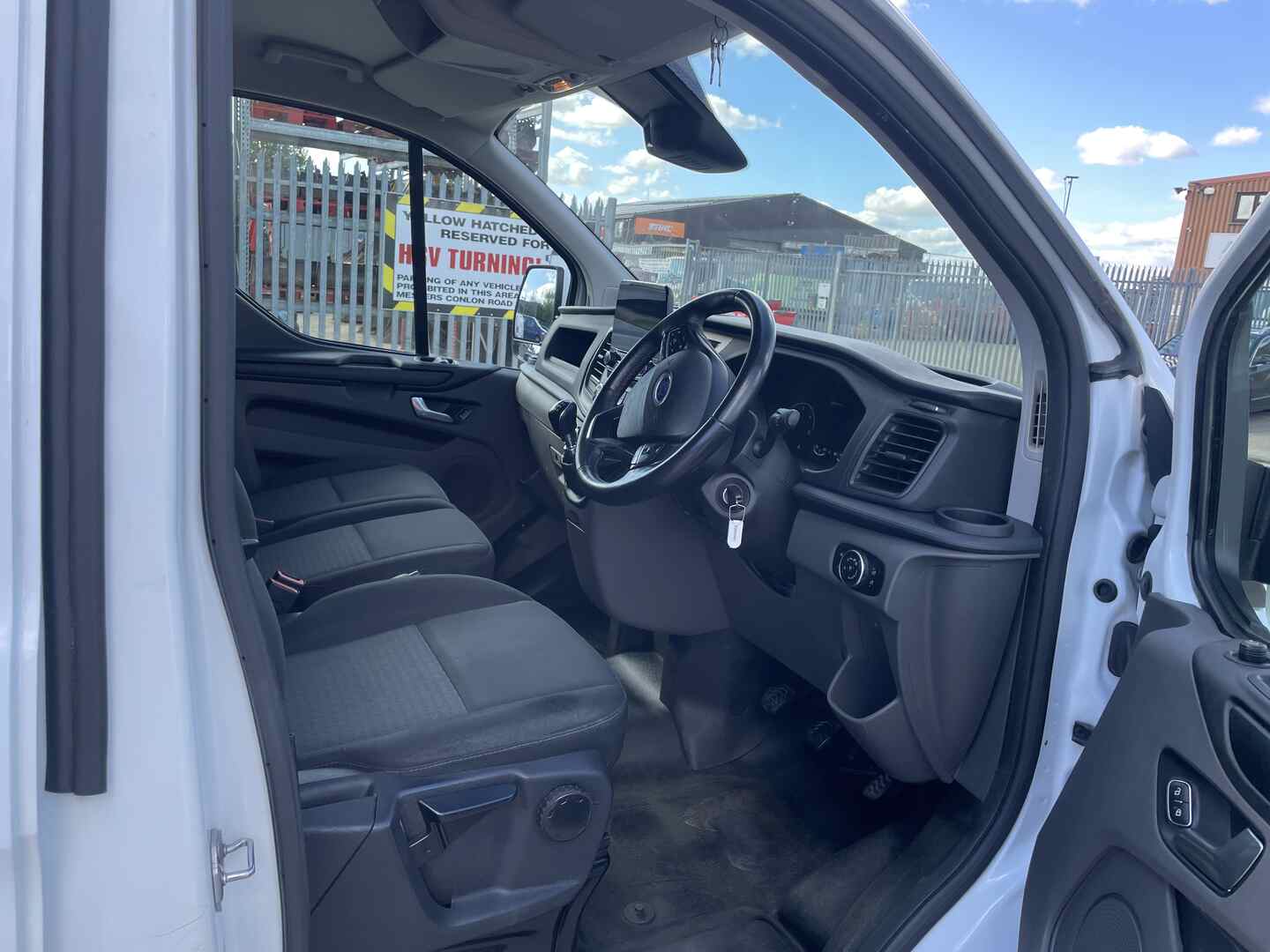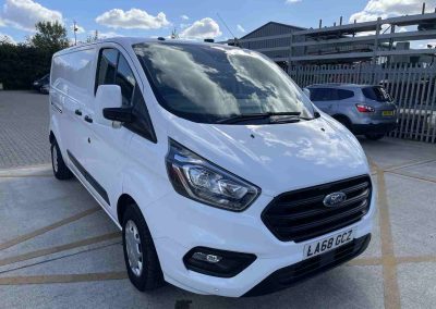 2019 Ford Transit Custom LWB with a standard roof twin side doors, 88,600 miles and diesel engine finished in white is a desirable van with features such as Air con, 2 keys, 6 speed gearbox, Apple car play, Android auto, sat nav, Bluetooth, electric windows, electric and heated mirrors, heated front windscreen, cruise control, speed limiter, lane assist, steering wheel controls, auto headlights, roof bars, front and rear parking sensors.