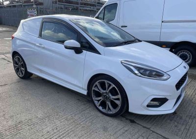 This white Ford Fiesta Van is the perfect run around, with its 1 litre petrol engine, 97500 miles and lots of extras! Such as, reversing camera and sensors, apple car play, Bluetooth, air con, keyless start, steering wheel controls, electric windows, heated front screen, sat nav.