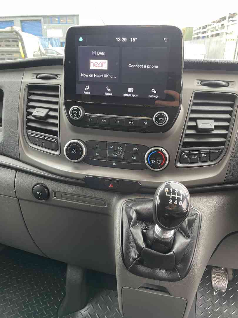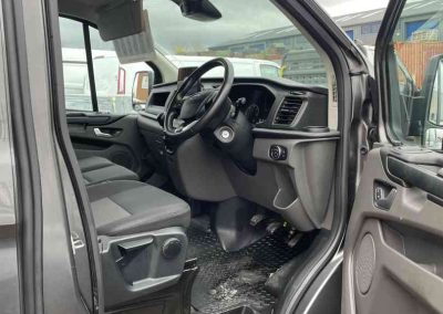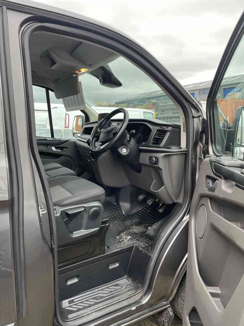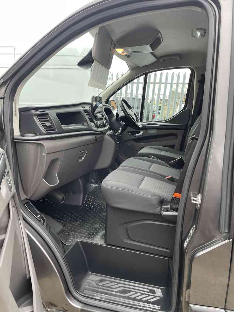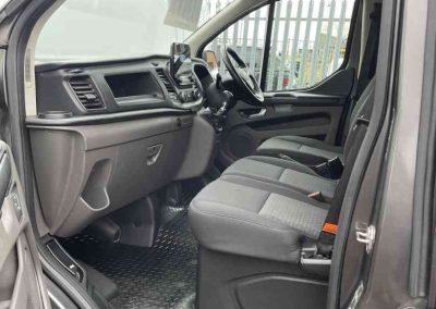 This grey Ford Transit Custom has a left side loading door and comes with a great spec and features including apple car play, Bluetooth, heated front window screen, front and rear parking sensors, cruise control, electric windows, auto headlights and steering wheel controls.